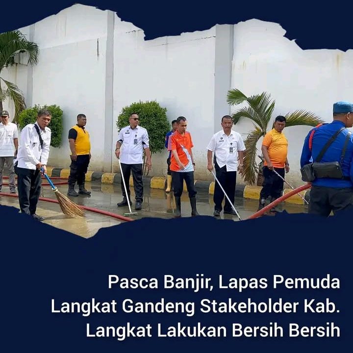Pasca Banjir, Lapas Pemuda Langkat Gandeng Stakeholder Kab. Langkat Lakukan Bersih Bersih