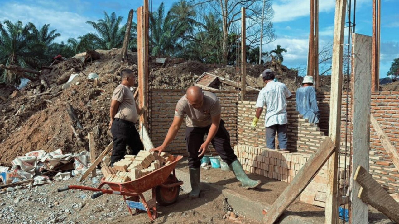 Kerja Bakti Tanpa Lelah, Brimob Polda Sumut Terus Pulihkan Rumah Warga dan Rumah Ibadah Pascabencana di Tapanuli Selatan