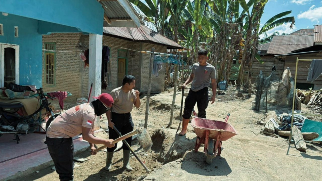 Gotong Royong di Tengah Pemulihan, Brimob Bangun Rumah Korban Banjir Bersama Warga