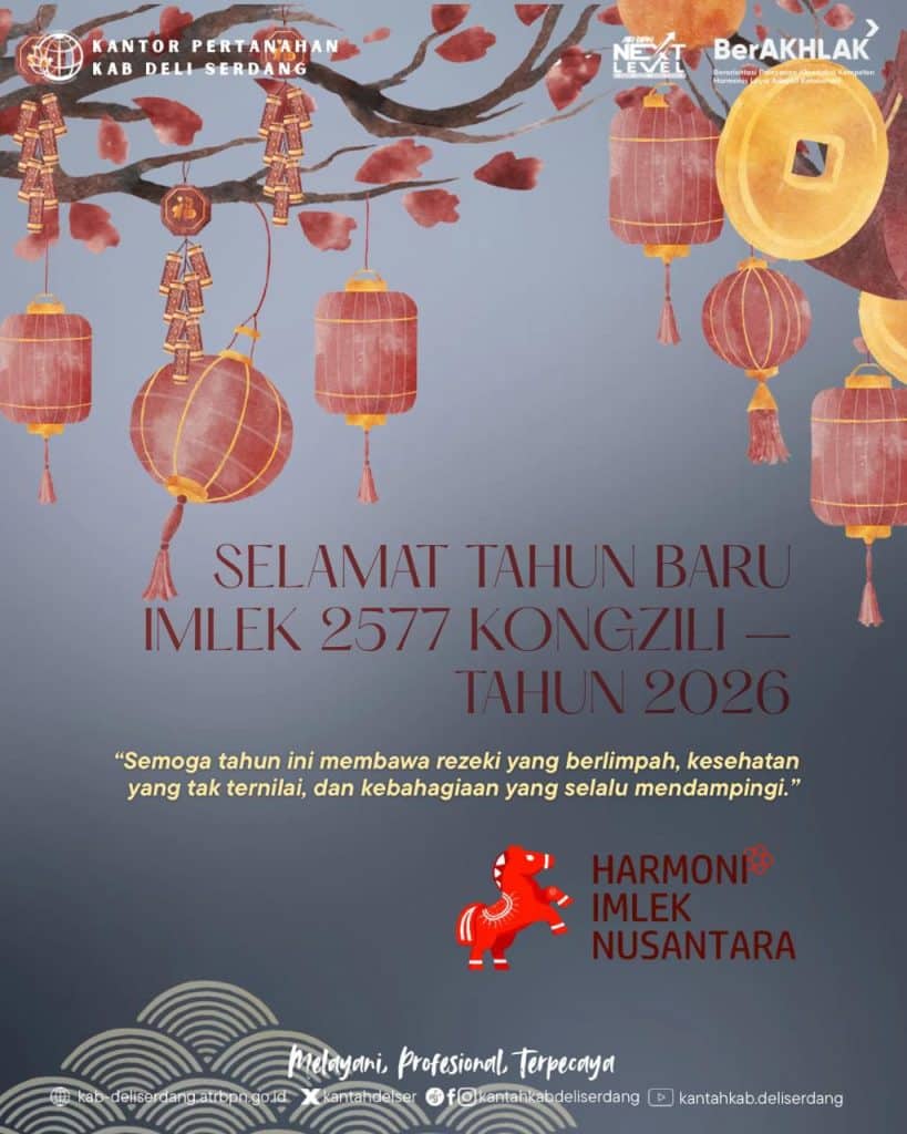 Segenap Jajaran Kantor Pertanahan Kabupaten Deli Serdang Mengucapkan Selamat Tahun Baru Imlek 2577 Kongzili – Tahun 2026