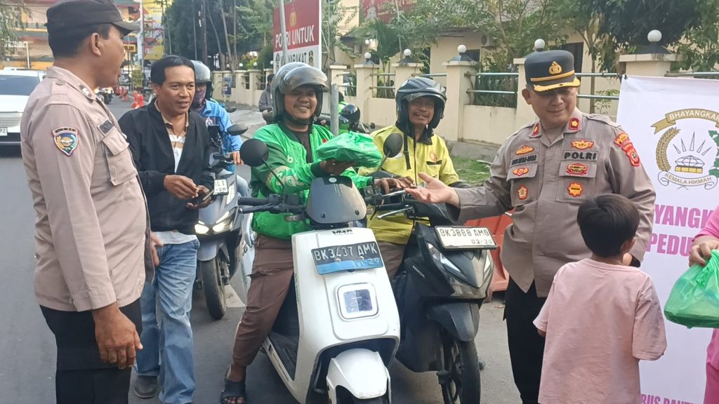 Kapolsek Medan Timur Kompol Agus M. Butarbutar SH dan Ketua Bhayangkari, Beserta Personil Bagi-Bagi Takjil di Bulan Ramadhan 1447 H. Kepada Masyarakat Pengguna Jalan.