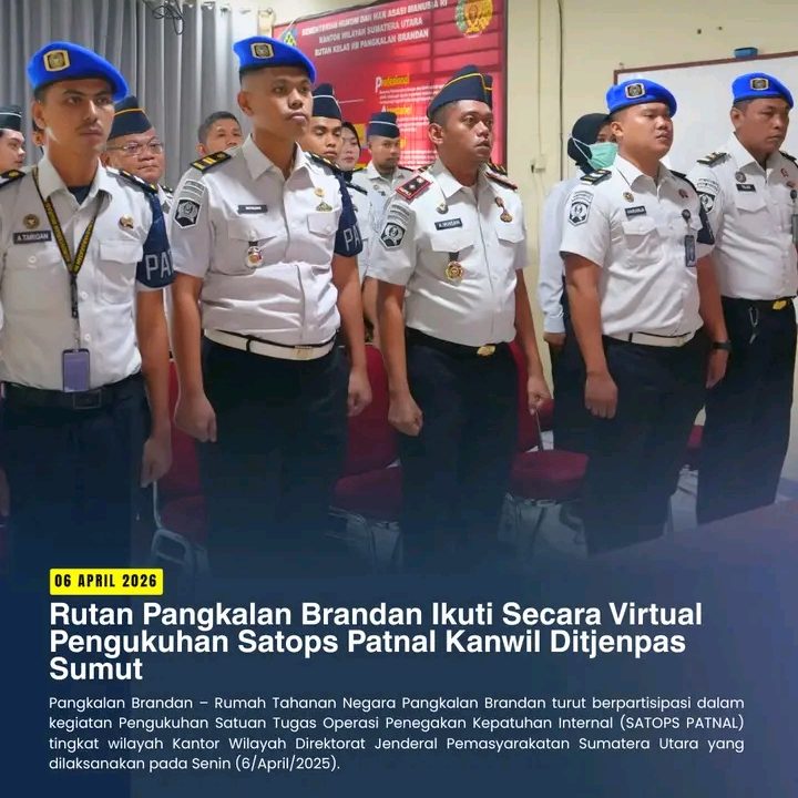 Rutan Pangkalan Brandan Ikuti Secara Virtual Pengukuhan Satops Patnal Kanwil Ditjenpas Sumut