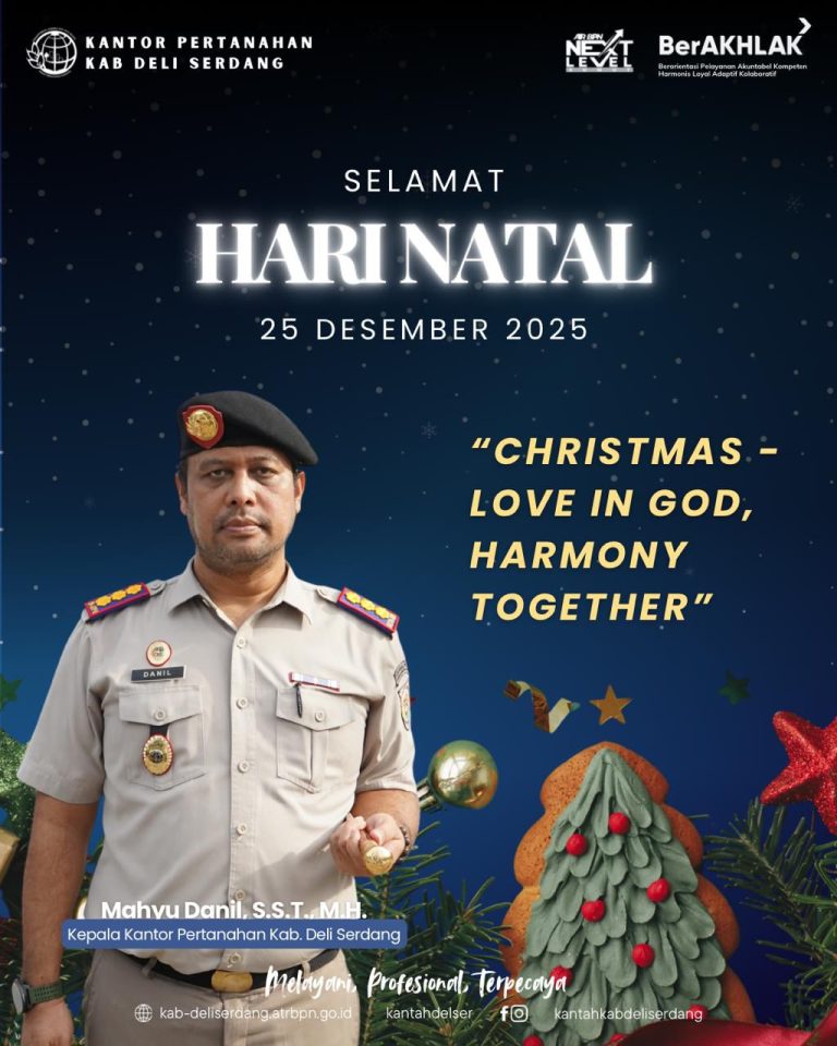 Deli Serdang, BLINKISS — Segenap jajaran Kantor Pertanahan Kabupaten Deli Serdang menyampaikan Selamat Hari Natal Tahun 2025 kepada seluruh umat...