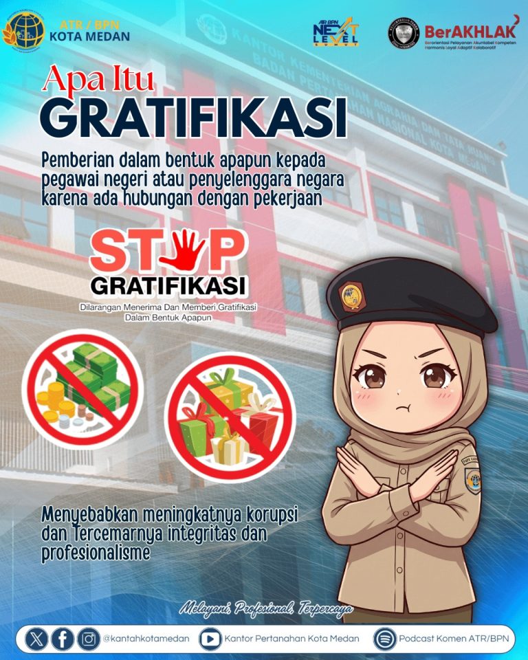 Medan, BLINKISS - Kantor Pertanahan Kota Medan menegaskan sikap tegas menolak segala bentuk gratifikasi sebagai bagian dari komitmen menghadirkan pelayanan...