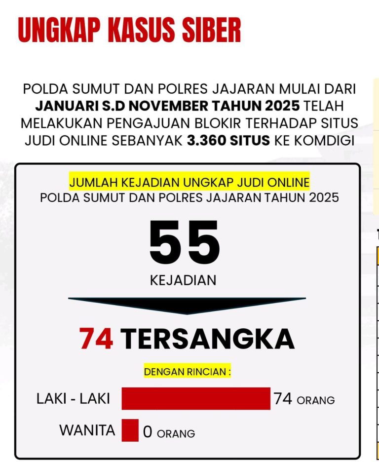 MEDAN, BLINKISS– Kepolisian Daerah Sumatera Utara menegaskan komitmennya dalam memerangi praktik perjudian online yang meresahkan masyarakat. Sepanjang periode 1 Januari...
