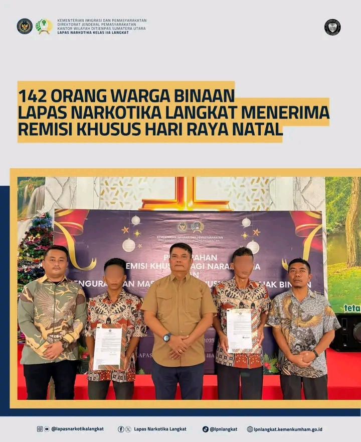 Binjai-Blinkiss.id Lembaga Pemasyarakatan (Lapas) Kelas IIA Binjai melaksanakan pemberian Remisi Khusus Hari Raya Natal Tahun 2025 bagi Narapidana serta Pengurangan...