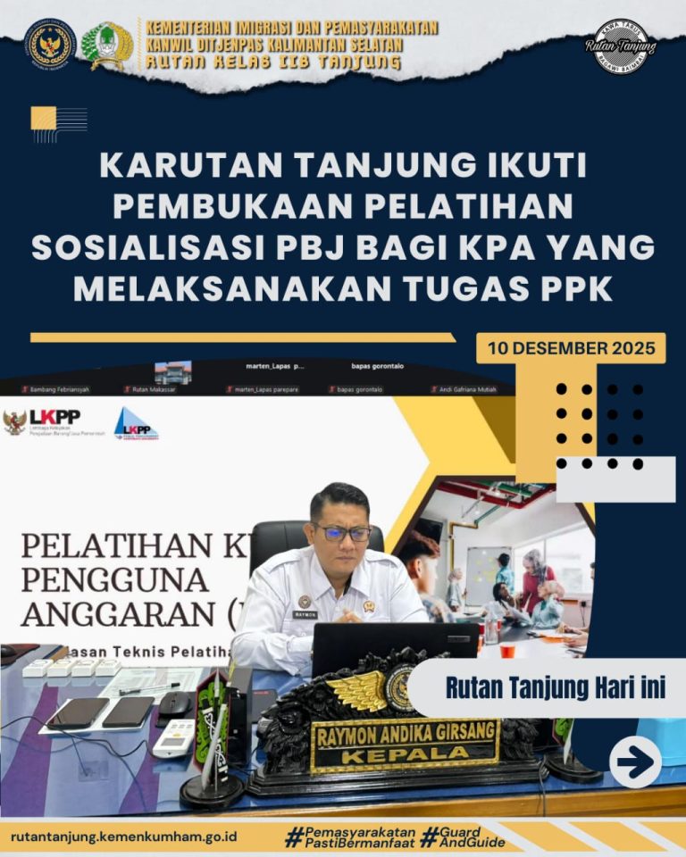 Tanjung-Blinkiss.idKepala Rumah Tahanan Negara (Rutan) Kelas IIB Tanjung, Raymon Andika Girsang, mengikuti kegiatan Sosialisasi Pengetahuan tentang Pengadaan Barang/Jasa (PBJ) bagi...