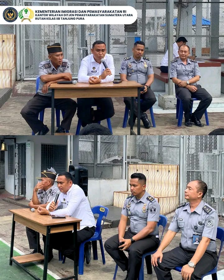 Rumah Tahanan Negara Kelas IIB Tanjung Pura menggelar temu sapa dengan warga binaan di Lapangan Utama Rutan Tanjung Pura. Kegiatan ini bertujuan menjalin silaturahmi antara Karutan Tanjung Pura yang baru, Fransisco Pandia dengan warga binaan. Senin (06/10)