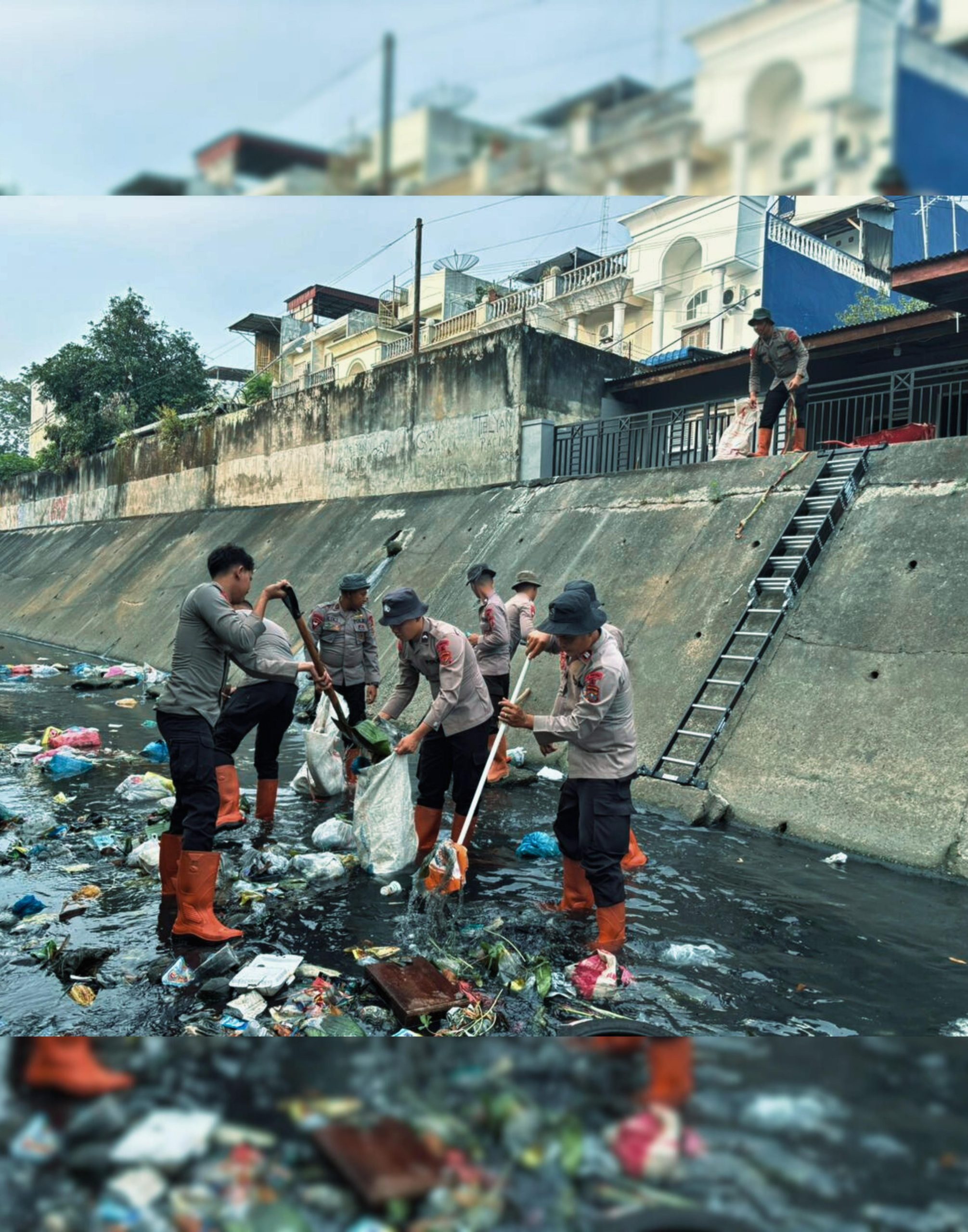 Pada pelaksanaan kegiatan yang berlangsung Selasa, 10 Februari 2026, sebanyak 10 personel Kompi 1 Batalyon A Pelopor diterjunkan untuk membersihkan saluran air dari tumpukan sampah, endapan lumpur, serta material lain yang berpotensi menghambat aliran air dan menimbulkan genangan.