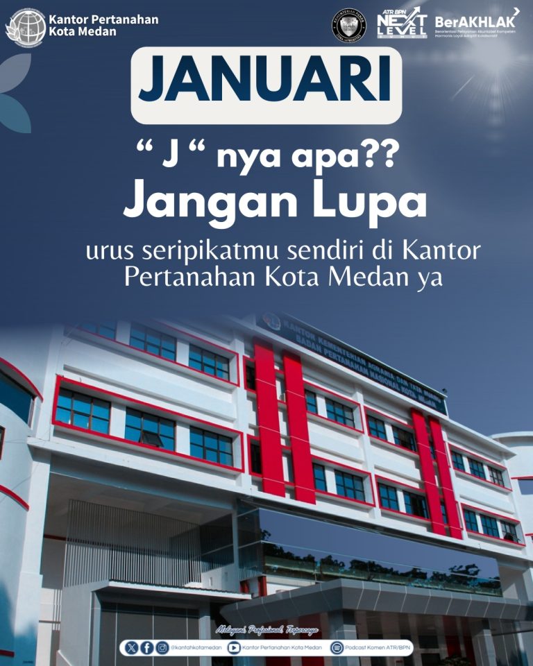 Medan, BLINKISS - Kantor Pertanahan Kota Medan mengusung tema “Januari J: Jangan Lupa Urus Sertipikatmu Sendiri” sebagai bentuk edukasi dan...