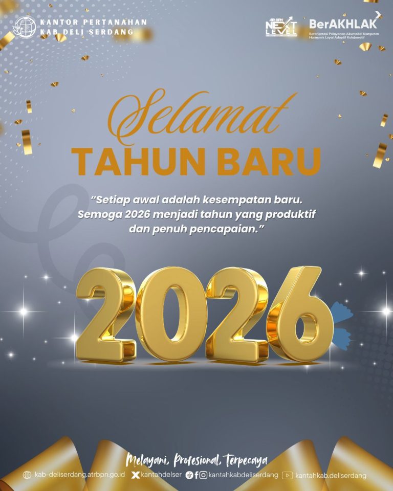 Deli Serdang, BLINKISS - Menyambut pergantian tahun, segenap jajaran Kantor Pertanahan Kabupaten Deli Serdang menyampaikan ucapan Selamat Tahun Baru 2026...