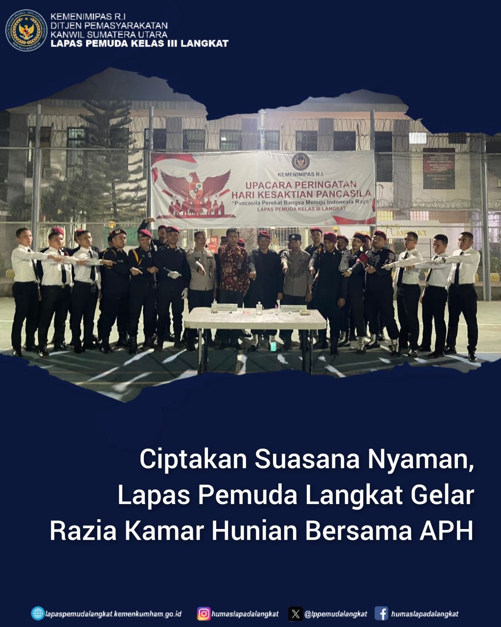 Hendrianto menambahkan bahwa kegiatan ini merupakan salah satu komitmen Lapas Pemuda Langkat menciptakan suasana aman, tertib serta nyaman serta tidak adanya benda terlarang dan kegiatan terlarang di kamar hunian Lapas Pemuda Langkat namun tetap dilaksanakan secara humanis.