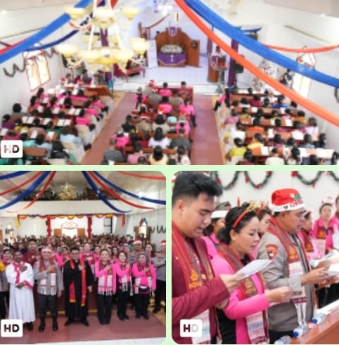 Ibadah Natal berlangsung dalam suasana penuh kehangatan, diisi dengan puji-pujian, persembahan dari Polwan, serta momen penyalaan lilin Natal yang sarat makna sebagai simbol terang dan harapan di tengah kegelapan.