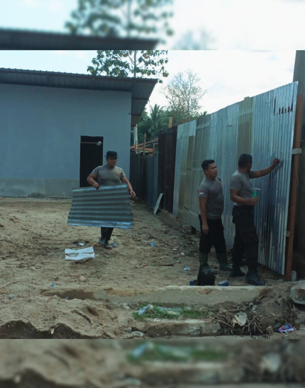 Dalam pelaksanaannya, personel Brimob bersama masyarakat melakukan pengambilan material bangunan berupa pasir dan semen untuk pemasangan lantai keramik pada rumah swadaya hunian sementara ke-11 yang tengah dibangun. Selain itu, Brimob juga membantu pemasangan pagar seng di sekolah MTs 4 Tolang Julu guna meningkatkan keamanan dan kenyamanan lingkungan belajar bagi para siswa.