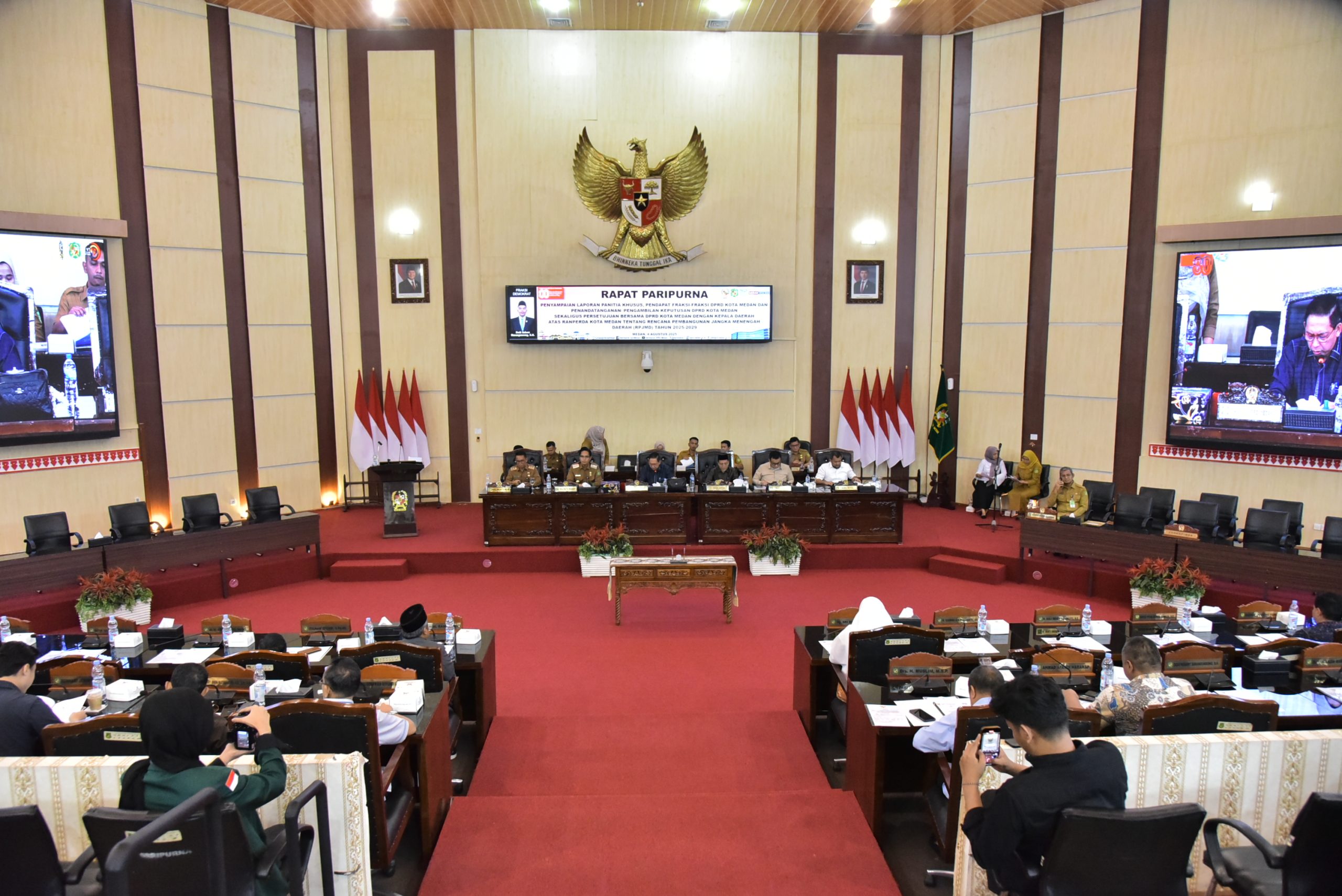 MEDAN, BLINKISS.ID – Dewan Perwakilan Rakyat Daerah (DPRD) Kota Medan menggelar Rapat Paripurna pada Senin (4/8/2025) pukul 11.00 WIB untuk penyampaian laporan Panitia Khusus (Pansus), pendapat Fraksi-fraksi, serta penandatanganan dan pengambilan keputusan terhadap Rancangan Peraturan Daerah (Ranperda) tentang Rencana Pembangunan Jangka Menengah Daerah (RPJMD) Kota Medan Tahun 2025–2029.