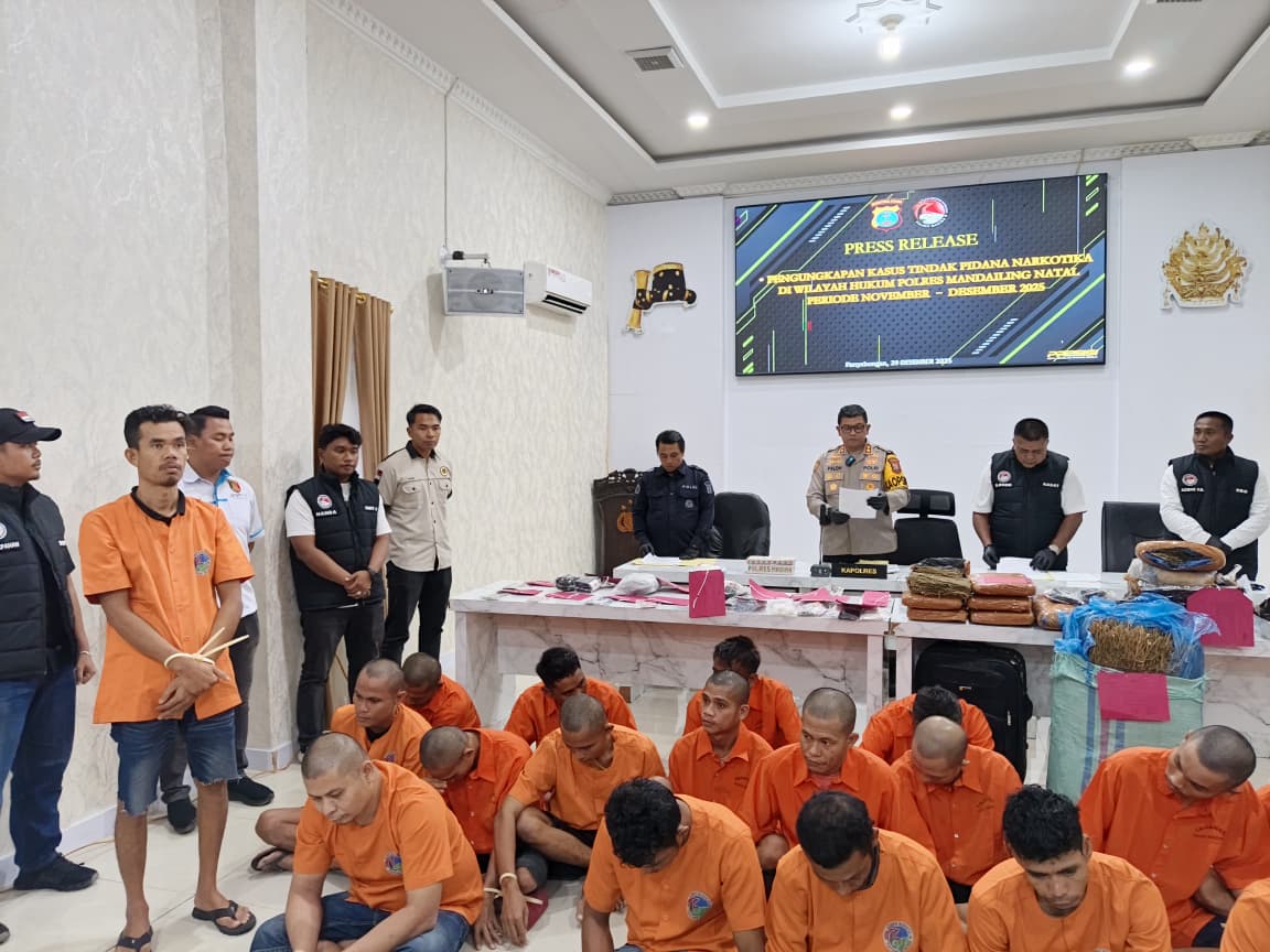 Di wilayah Polsek Natal, pada 21 November 2025, petugas mengamankan YS di Desa Bintuas dengan barang bukti sabu 3,79 gram, serta JN dengan ganja seberat 6,55 gram. Polsek Lingga Bayu mengamankan SJ di Desa Tandikek, Kecamatan Ranto Baek, dengan sabu 11,83 gram, dan AN, warga Pulau Padang, Desa Simpang Durian, dengan sabu 0,33 gram.