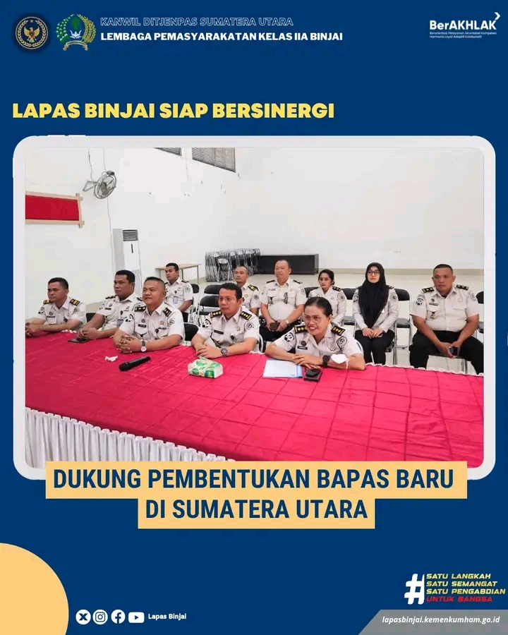 Menanggapi kebijakan tersebut, Kepala Lapas Kelas IIA Binjai, Wawan Irawan menyampaikan komitmen penuh dalam mendukung setiap langkah strategis pimpinan. Ia menegaskan bahwa Lapas Binjai siap bersinergi dan berkontribusi aktif dalam proses pembentukan Balai Pemasyarakatan baru sebagai bagian dari penguatan sistem pemasyarakatan yang modern, humanis, dan berkeadilan.