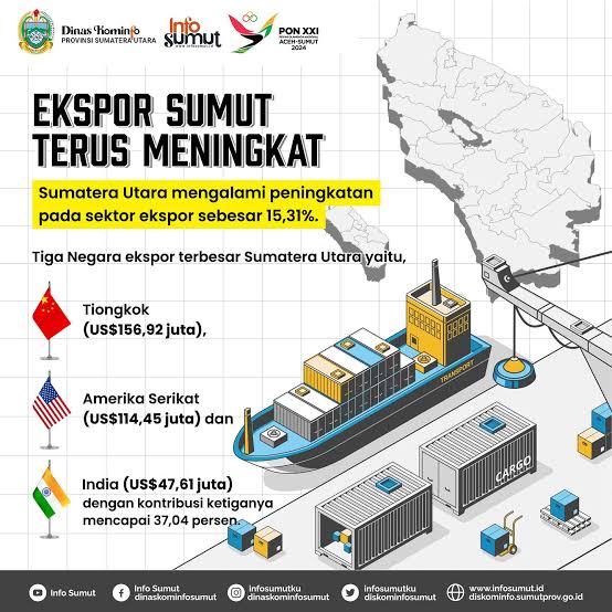 Sesuai data dari Badan Pusat Statistik (BPS) Provinsi Sumatra Utara (Sumut) bahwa kinerja ekspor Sumatra Utara pada September 2025 mengalami peningkatan secara signifikan per tahunan dengan kenaikan sebesar 6,08 persen dibandingkan bulan September 2024.