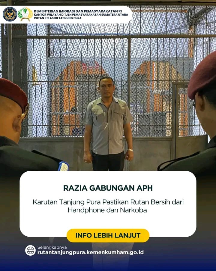 Razia ini digelar bersama pihak Polsek Tanjung Pura dan dipimpin langsung oleh Karutan Tanjung Pura, Fransisco didampingi pejabat struktural beserta pegawai. Selama kegiatan razia berlangsung, seluruh petugas memeriksa secara seksama setiap sudut kamar hunian guna memastikan tidak terdapat barang-barang terlarang yang dapat mengakibatkan gangguan keamanan dan ketertiban.