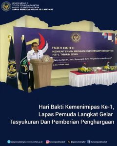 Dalam rangka memperingati Hari Bakti Kementerian Imigrasi dan Pemasyarakatan ke-1 Tahun 2025, Rumah Tahanan Negara Kelas IIB Tanjung Pura melaksanakan tasyakuran dengan penuh kebersamaan yang dilaksanakan di Aula Rutan Tanjung Pura. Rabu (19/11)