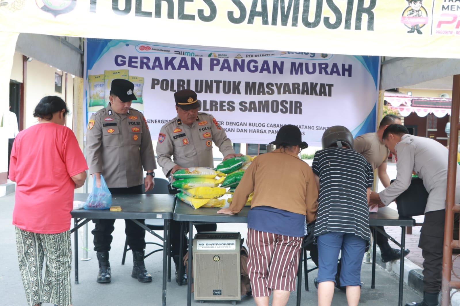 Polres Samosir kembali melaksanakan Gerakan Pangan Murah (GPM) Polri untuk Masyarakat, di pintu masuk gerbang Mako Polres Samosir. Kegiatan ini merupakan hari kedua pelaksanaan GPM dalam rangka memperingati HUT RI ke-80 sekaligus mendukung upaya pemerintah menjaga stabilitas harga dan pasokan kebutuhan pokok, khususnya beras.