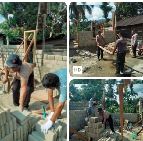 Brimob Polda Sumut Bantu Warga Bangun Rumah Swadaya untuk Korban Banjir di Desa Tolang Julu