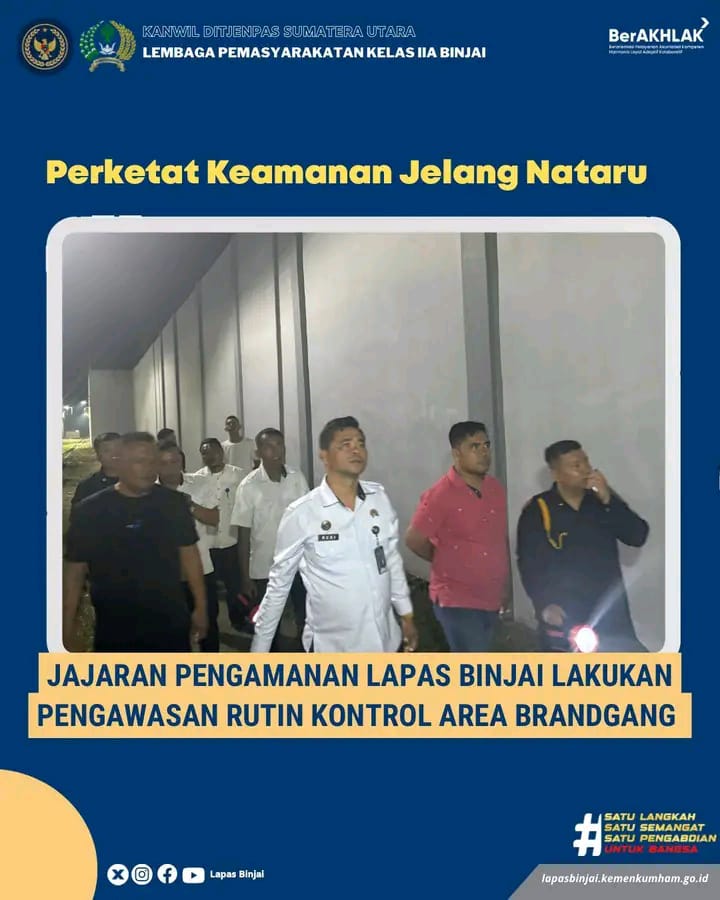 Memasuki masa perayaan Natal 2025 & Tahun Baru 2026, Lembaga Pemasyarakatan (Lapas) Kelas IIA Binjai meningkatkan kewaspadaan dengan melakukan pengamanan ekstra dan kontrol intensif di area brandgang Lapas. Langkah ini merupakan bentuk komitmen dalam menjaga stabilitas keamanan dan ketertiban di dalam Lapas.