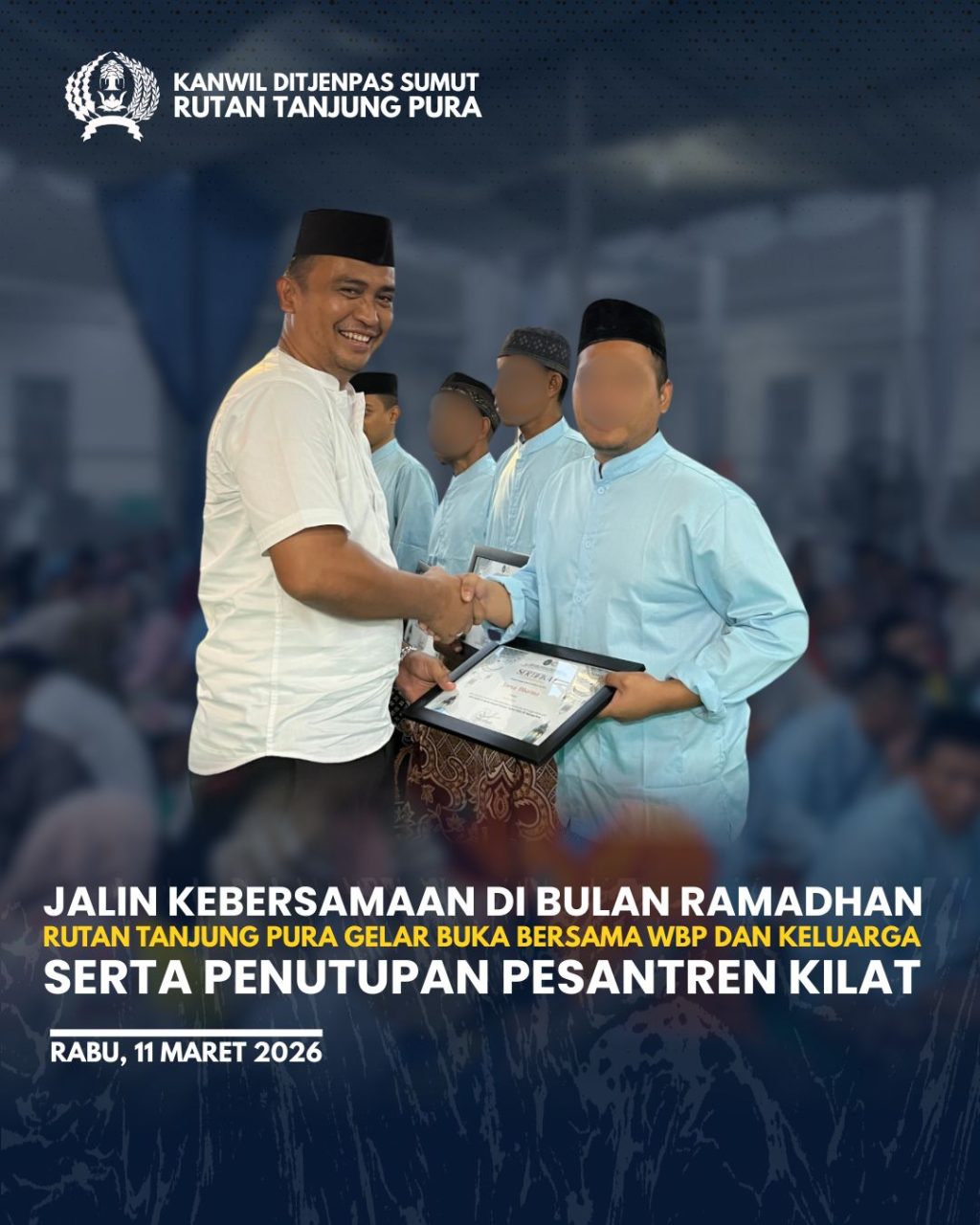 Kegiatan buka puasa bersama ini menjadi salah satu bentuk komitmen Rutan Tanjung Pura dalam menghadirkan pembinaan yang humanis dan bermartabat bagi para warga binaan.