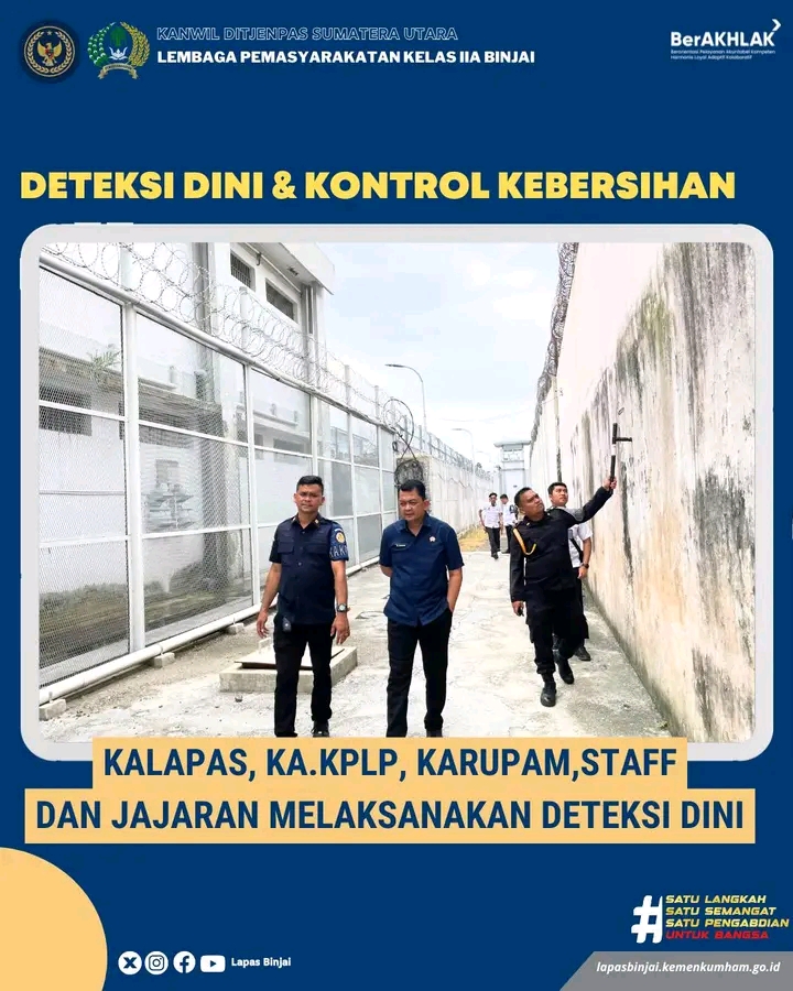 Lembaga Pemasyarakatan Kelas IIa Binjai melaksanakan kegiatan deteksi dini di seputaran area branggang dan memantau kebersihan.