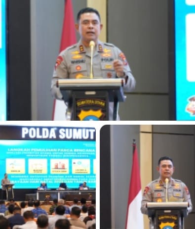 Dalam sambutannya, Kapolda menyampaikan apresiasi kepada seluruh unsur lintas sektoral yang hadir dan menunjukkan komitmen kuat dalam menjaga stabilitas keamanan wilayah Sumatera Utara, khususnya di tengah meningkatnya tantangan akibat bencana hidrometeorologi yang melanda 19 kabupaten/kota.