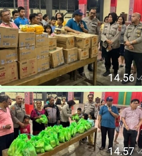 Kapolsek Medan Timur Kompol Agus M Butar Butar, Terima Bantuan Sosial dari Kapolrestabes Medan Yang Ditujukan ke Posko Bencana Banjir GISM HKBP Nomensen