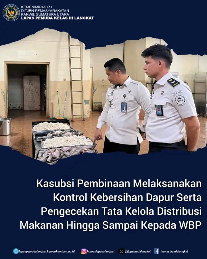 Sebagai wujud dalam meningkatkan kualitas penyajian makan dan minum kepada Warga Binaan serta kebersihan dapur, Kasubsi Pembinaan, Efri Yanto lakukan kontrol di Dapur, pada hari Kamis (29/01/2026).