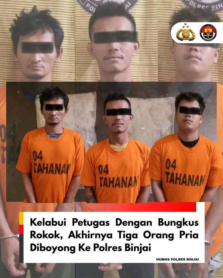 Kelabui Petugas Dengan Bungkus Rokok, Akhirnya Tiga Orang Pria Diboyong Ke Polres Binjai