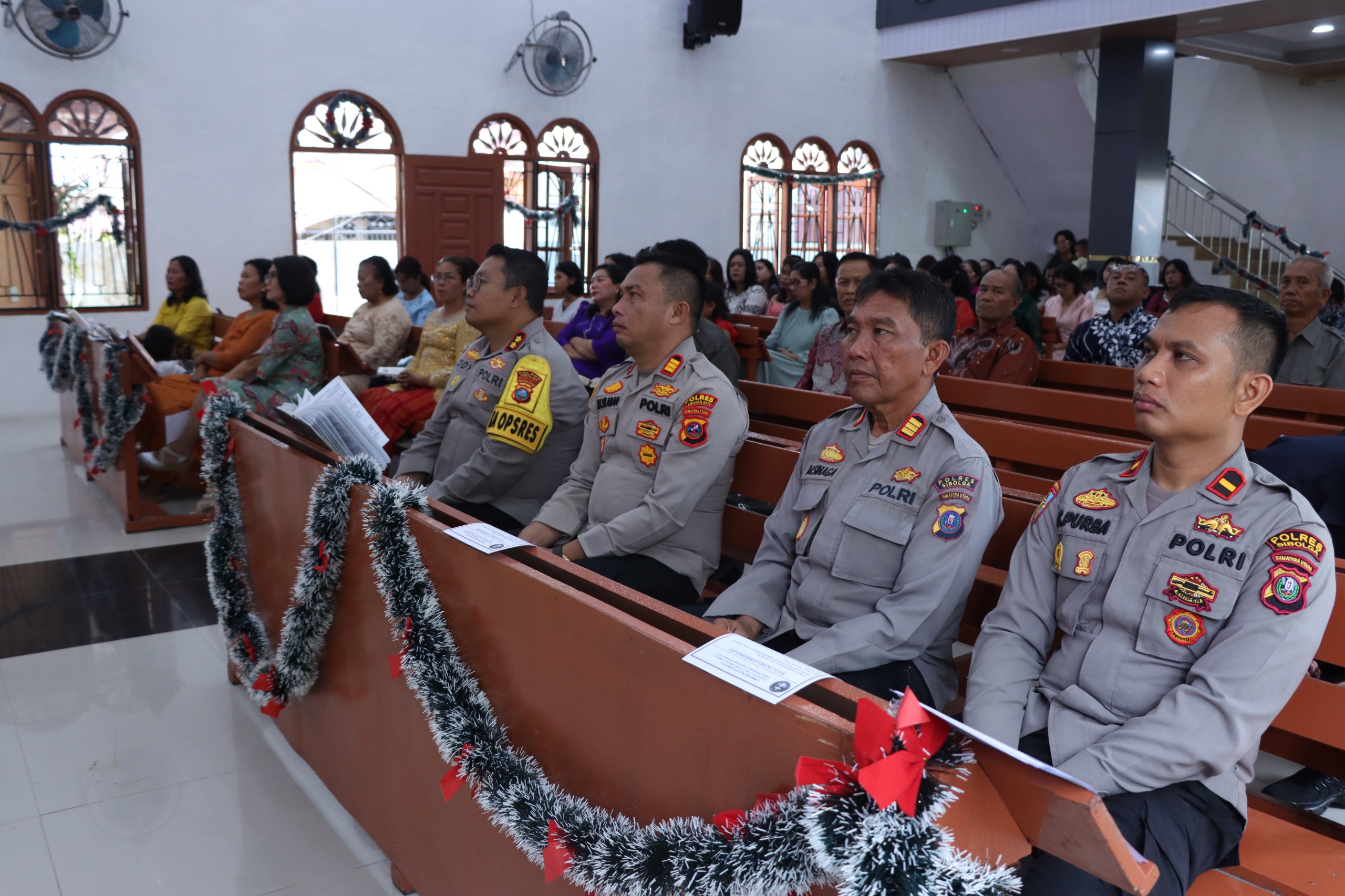 Ibadah Natal Bersama ini dipimpin oleh para pimpinan gereja setempat dan diikuti oleh para penatua, majelis, pengurus gereja, serta jemaat. Kegiatan tersebut turut dihadiri langsung oleh Kapolres Sibolga AKBP Eddy Inganta, S.H., S.I.K., M.H., bersama Ketua Bhayangkari Cabang Sibolga Ny. Laura Eddy Inganta, para pejabat utama Polres Sibolga, serta personel Polres Sibolga.