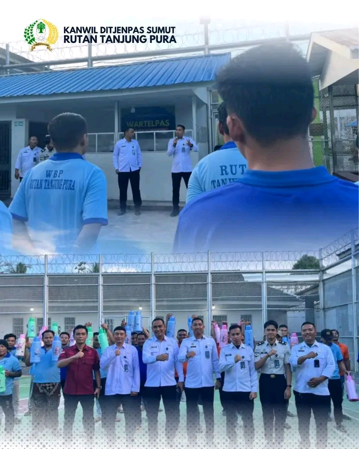 Semangat berbagi di bulan Ramadhan 1447H kembali ditunjukkan oleh jajaran Rutan Tanjung Pura. Sebagai wujud kepedulian terhadap Warga Binaan Pemasyarakatan (WBP) yang tengah menjalankan ibadah puasa, Rutan Tanjung Pura membagikan sebanyak 56 unit termos kepada seluruh kamar hunian, di mana setiap kamar mendapatkan 2 unit termos. Kamis (12/03)