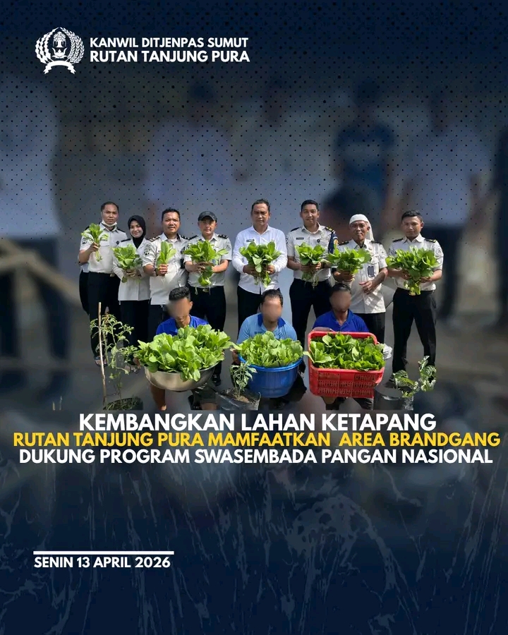 Rumah Tahanan Negara Kelas IIB Tanjung Pura terus menunjukkan komitmen nyata dalam mewujudkan kemandirian pangan di lingkungan rutan melalui program optimalisasi lahan yang dikelola secara terpadu dan berkelanjutan. Jauh dari kesan stagnan, lingkungan rutan kini bertransformasi menjadi kawasan yang hidup, hijau, dan produktif berkat sinergi aktif antara petugas dan warga binaan. Upaya ini merupakan cerminan nyata bahwa sebuah institusi negara pun mampu bergerak aktif dalam mendukung ketahanan pangan dari lingkup terkecil sekalipun.Senin (13/04)