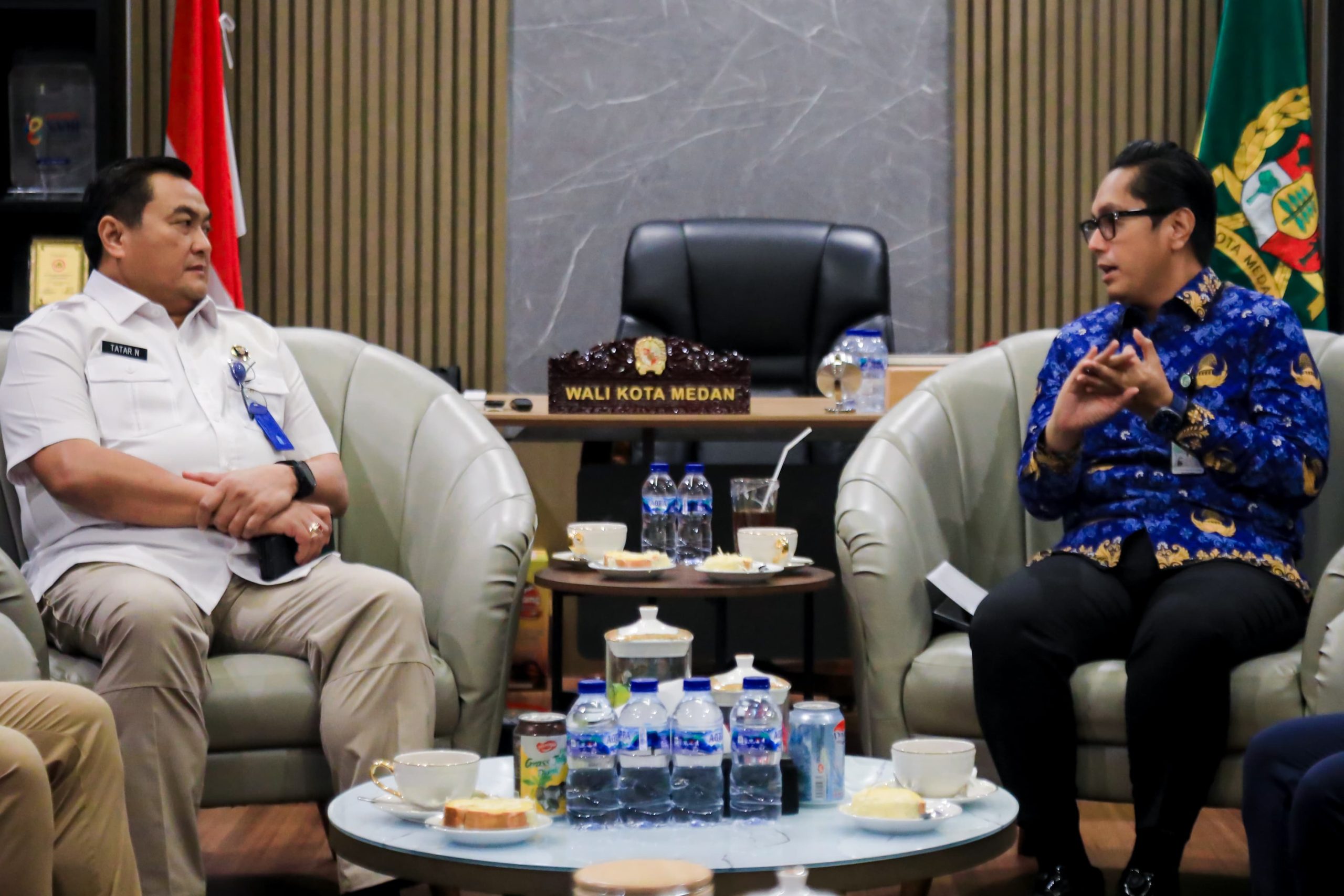 Wali Kota Medan Rico Tri Putra Bayu Waas menerima kunjungan Kepala Badan Narkotika Nasional (BNN) Provinsi Sumut, Brigjend Pol Tatar Nugroho di rumah dinas Wali Kota, Rabu (17/12/25).