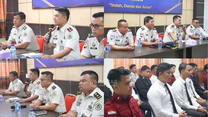 Kepala Lembaga Pemasyakatan (Lapas) Narkotika Kelas IIA Langkat, Tapianus Antonio Barus, didampingi langsung oleh Ka. KPLP, Kasi Kamtib serta Kasubbag TU. memberikan penguatan kepribadian dengan berbagi pengalaman dan berikan motivasi kepada petugas, Selasa (06/01/26).