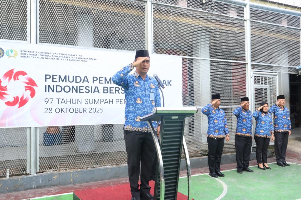 Tanjung Pura, BLINKISS – Dalam rangka memperingati hari sumpah pemuda ke-97 tahun 2025, Rumah Tahanan Negara Kelas IIB Tanjung Pura menggelar upacara bendera dengan penuh semangat kebangsaan di Lapangan Utama Rutan Tanjung Pura. Selasa (28/10)