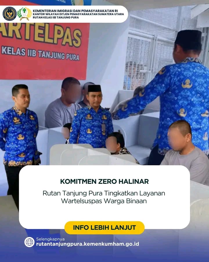 Rumah Tahanan Negara Kelas IIB Tanjung Pura berkomitmen dalam mewujudkan zero handphone, pungutan liar, dan narkoba (halinar) melalui peningkatan layanan wartelsuspas. Selasa (28/10)