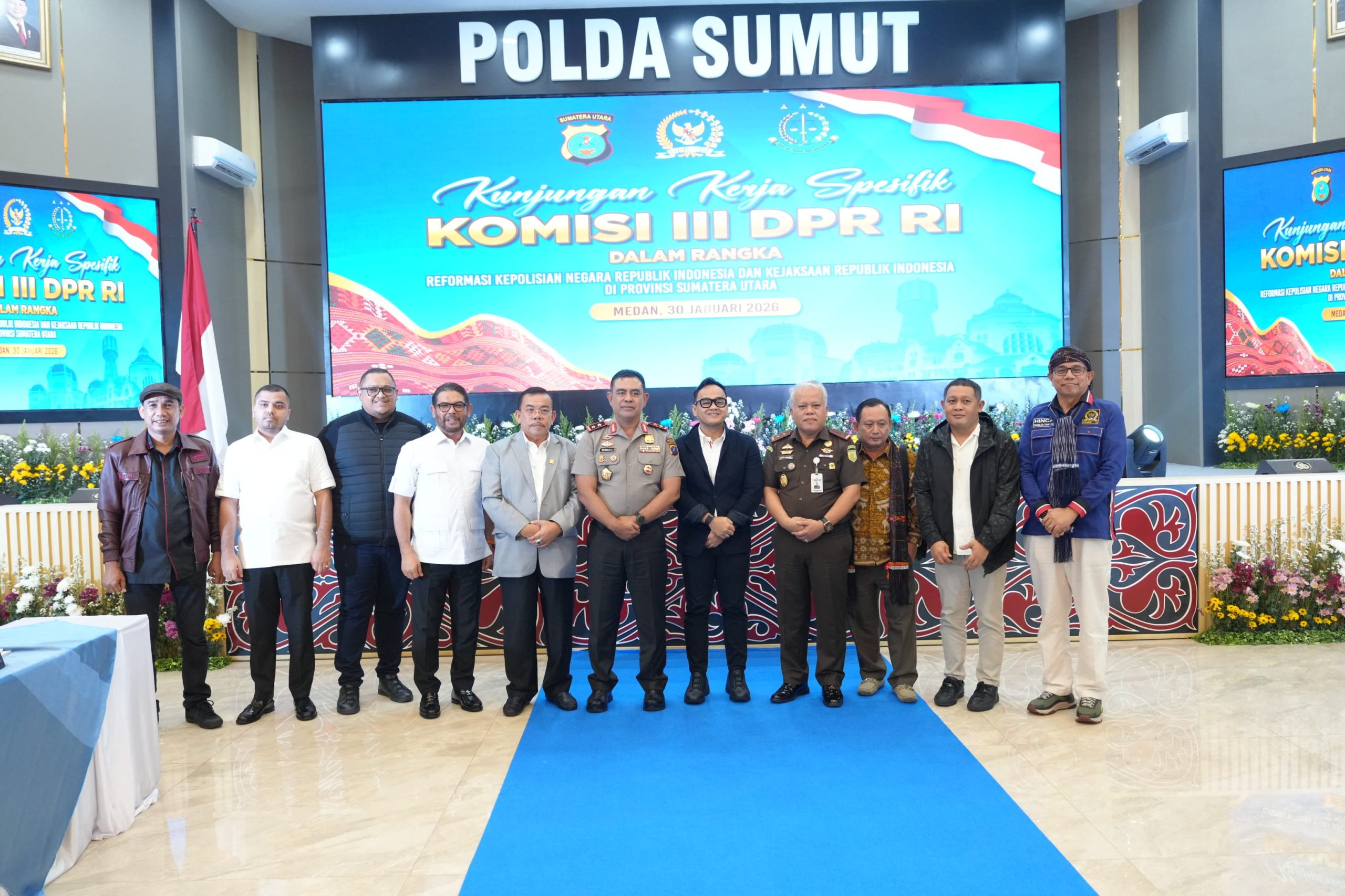 Medan, BLINKISS– Komisi III Dewan Perwakilan Rakyat Republik Indonesia (DPR RI) melaksanakan kunjungan kerja spesifik dalam rangka Reformasi Polri dan Reformasi Kejaksaan Republik Indonesia di Provinsi Sumatera Utara, Jumat (30/1/2026). Kegiatan ini berlangsung di Aula Tibrata Polda Sumatera Utara.