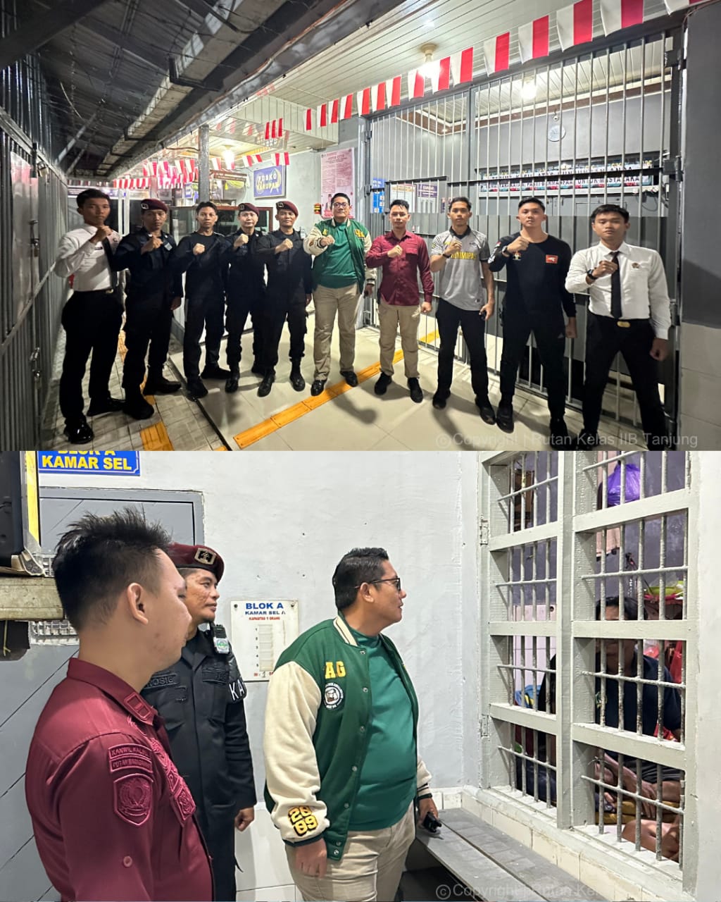 Dalam rangka menjaga keamanan dan ketertiban di dalam Rumah Tahanan Negara (Rutan) Kelas IIB Tanjung, Kepala Rutan, Raymon Andika Girsang dan Kepala Subseksi Pelayanan Tahanan (Kasubsi Yantah), Al Muqtadir Pasya, selaku perwira piket beserta jajaran melakukan kontrol keliling ditemani Komandan Jaga Regu Malam, Rosie Hendra Saputra. Hal ini dilakukan untuk memastikan kondisi dan situasi baik diarea blok hunian maupun area beranggang dalam keadaan aman dan kondusif. Kamis (23/10/2025).