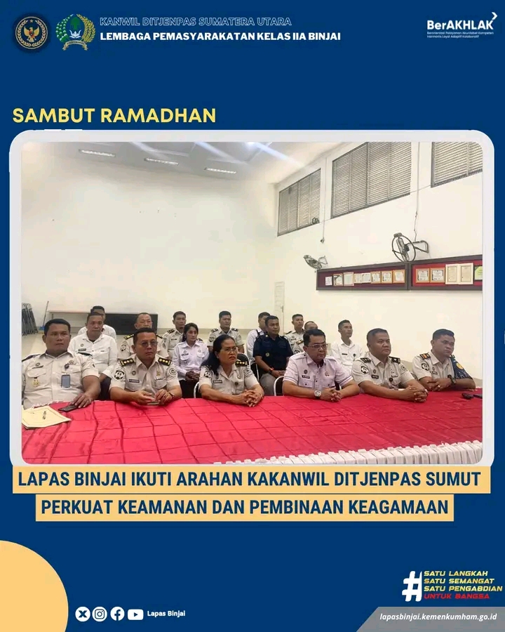 Menindaklanjuti arahan tersebut, Lapas Binjai berkomitmen untuk meningkatkan pengawasan, menjaga stabilitas keamanan, serta mengoptimalkan program pembinaan kerohanian selama Ramadhan, guna menciptakan suasana yang aman, tertib, dan kondusif.