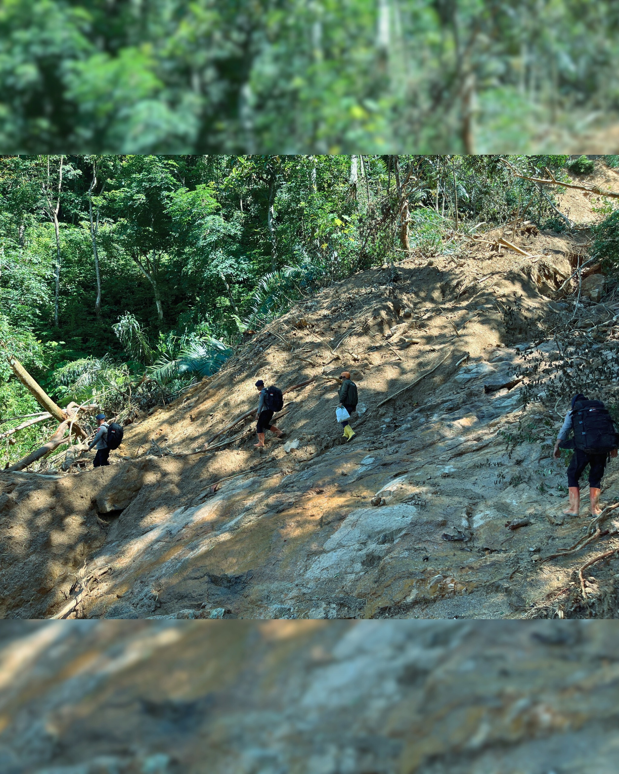 Tanah berlumpur setinggi mata kaki, bebatuan licin, dan rute naik-turun yang membahayakan menjadi “teman perjalanan” sepanjang pendistribusian bantuan. Namun di balik setiap langkah yang berat, ada tekad yang tidak pernah goyah: menjangkau warga yang benar-benar membutuhkan.