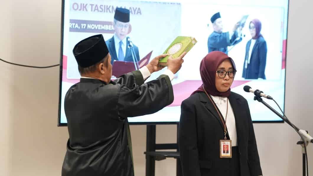 Ketua Dewan Komisioner Otoritas Jasa Keuangan (OJK) Mahendra Siregar melantik dan mengambil sumpah jabatan Nofa Hermawati sebagai Kepala OJK Tasikmalaya, melalui acara yang berlangsung di Kantor OJK, Gedung Wisma Mulia, Senin (17/11/2025)
