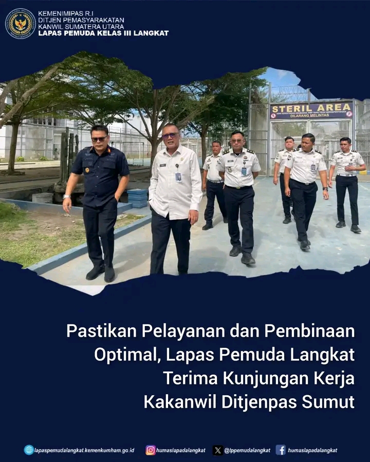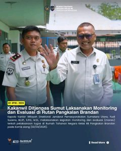Lapas Pemuda Kelas III Langkat terima kunjungan kerja Kepala Kantor Wilayah Direktorat Jenderal Pemasyarakatan Sumatera Utara, Yudi Suseno, pada Kamis (02/04/2026).