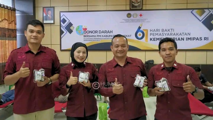Lembaga Pemasyarakatan (Lapas) Narkotiak Kelas IIA Langkaat pagi ini menggelar kegiatan donor darah memperingati Hari Bakti Pemasyarakatan Ke-61, bekerjasama dengan Palang Merah Indonesia (PMI) Kabupaten Langkat kegiatan bertempat di Aula Serbaguna Lapas Narkotika Langkat, Kamis (17/04/2025). Kegiatan sosial ini merupakan bentuk kepedulian jajaran pemasyarakatan terhadap sesama, sekaligus sebagai kontribusi nyata dalam membantu ketersediaan stok darah di Kabupaten Langkat.