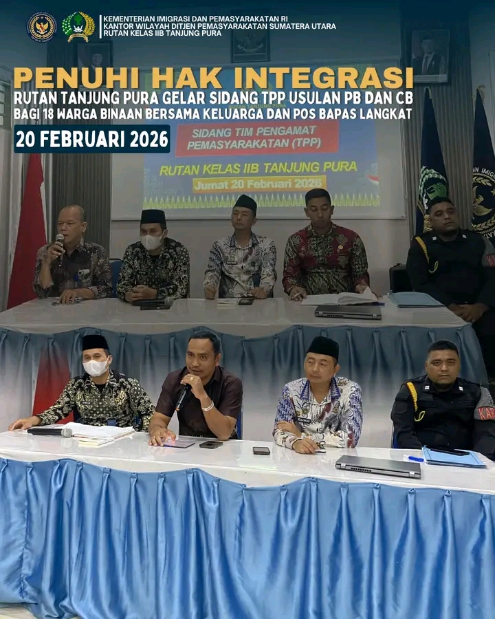Rumah Tahanan Negara Kelas IIB Tanjung Pura terus berkomitmen memberikan hak-hak warga binaan secara transparan dan akuntabel. Hal ini dibuktikan dengan dilaksanakannya Sidang Tim Pengamat Pemasyarakatan (TPP) terhadap 18 orang Warga Binaan Pemasyarakatan (WBP).