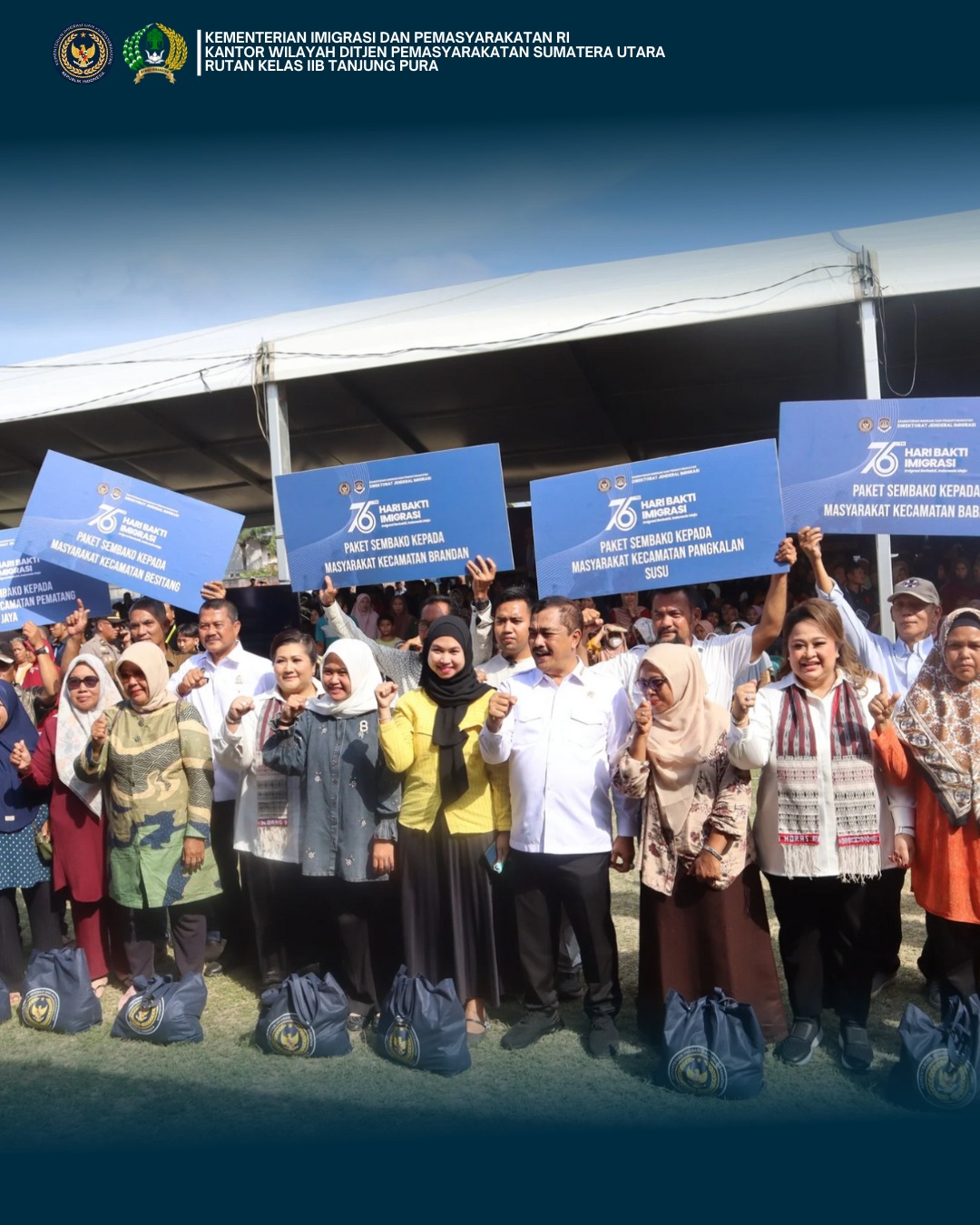 Peringati Hari Bakti Imigrasi ke-76, Menteri Imigrasi dan Pemasyarakatan Hadir di Tengah Masyarakat Tanjung Pura dengan Aksi Nyata Pembagian Paket Sembako sebagai Wujud Kepedulian Sosial