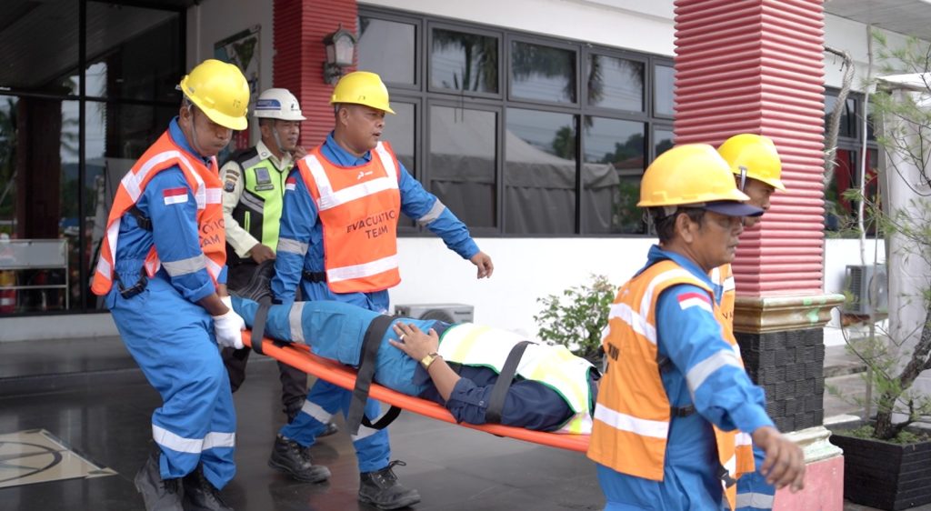 Simulasi diawali dengan skenario gempa bumi berkekuatan 6,5 SR yang memicu penghentian operasi serta evakuasi pekerja. Kondisi berkembang dengan adanya kebocoran minyak, potensi tsunami, serta kebakaran di salah satu tangki penyimpanan BBM. Melalui koordinasi lintas fungsi, dukungan cepat dari Tim PKD Regional Sumbagut, seluruh situasi berhasil dikendalikan secara aman hingga dinyatakan “All Clear,” Kamis (13/11/2025)